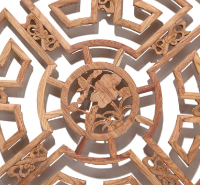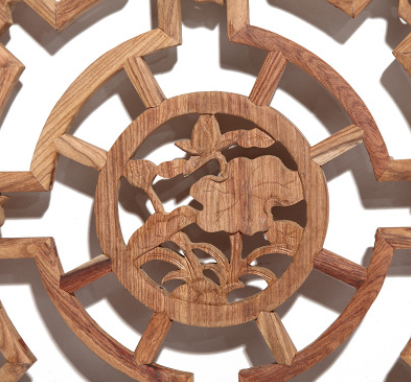 东阳木雕中式仿古挂件 圆形实木镂空雕花家居工艺饰品背景墙挂饰