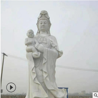 石雕观音 汉白玉观音佛像 曲阳石雕三面观音 石雕佛像现货供应