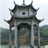 晚霞红石雕凉亭六角亭子 园林中式石头亭子 花岗石雕塑摆件定制