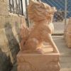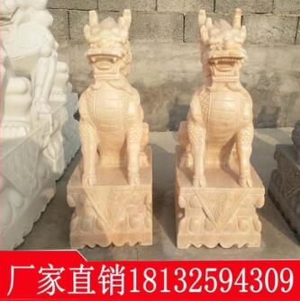 石雕麒麟一对 大理石汉白玉晚霞红石麒麟 庭院门口摆件支持定制