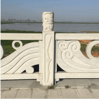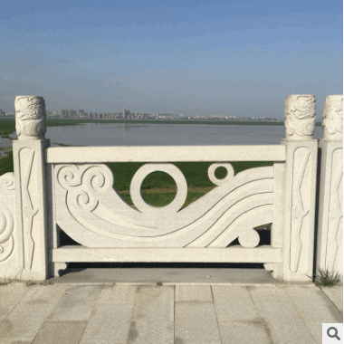 厂家直销石雕拱桥汉白玉栏板雕刻 镂空小鱼花草围栏 小区景区别墅