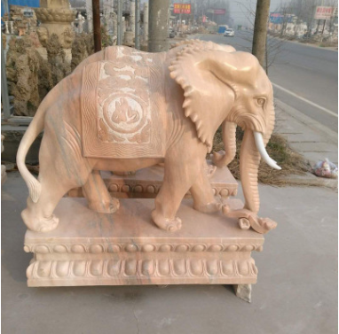晚霞红石雕大象汉白玉大象动物雕塑园林景观酒店门口摆件