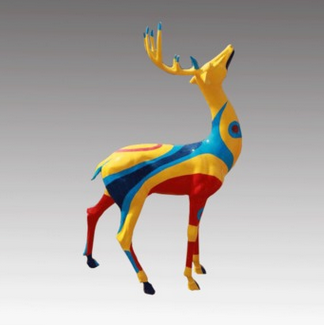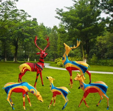 厂家直销玻璃钢鹿雕塑树脂彩绘鹿仿铜鹿仿真动物模型公园景观摆件