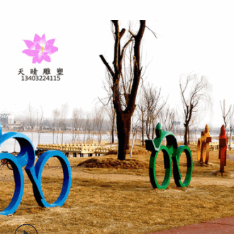 定制不锈钢校园主题抽象雕塑自行车运动人物雕塑城市户外景观雕塑