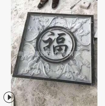 曲阳厂家定制直销青石福字透雕石雕 镂空浮雕花窗 庭院广场雕塑摆