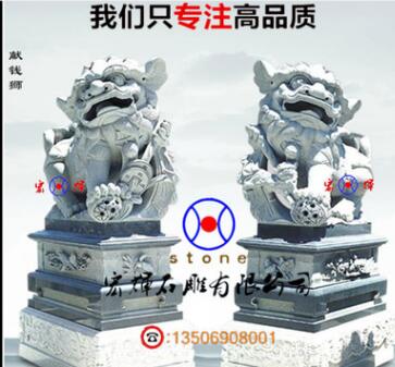 热卖威武雄壮青石献钱狮 石雕南狮纯手工制造