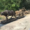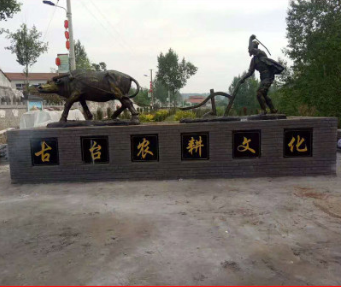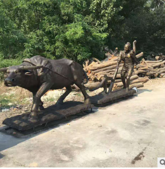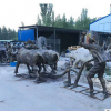 农耕主题玻璃钢仿铜雕塑现代人物农民种地开荒耕地牛农家乐摆件