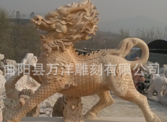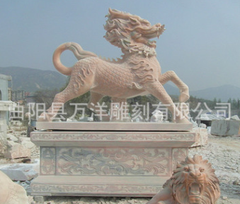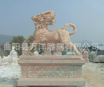 晚霞红石雕麒麟祥瑞雕刻石雕貔貅曲阳厂家定做价格优惠