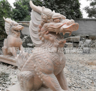 加工定做晚霞红石雕貔貅 大理石貔貅雕刻工艺品貔貅貔貅麒麟雕刻