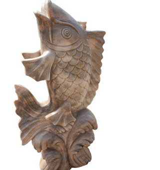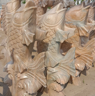 石雕喷水鱼晚霞红大理石庭院喷泉鲤鱼雕塑吐水小鱼水池装饰品摆件