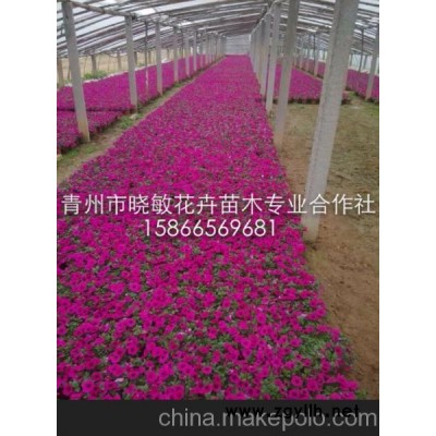 园艺品种极多,按植株性状分有:高性种、矮性种、丛生种、匍匐种、直立种;按花型分有:大花(10-15㎝以上)、小花、波状、锯齿状、重瓣、单瓣;按花色分有:紫红、鲜红、桃红、纯白、肉色及多种带条纹品种(红底白条纹、淡蓝底红脉纹、桃红底白斑条等)。商业上常根据花的大小以及重瓣性将矮牵牛分为大花单瓣类、丰花单瓣类、多花单瓣类、大花重瓣类、重瓣丰花类、重瓣多花类和其他类型(不属于以上类型的均归为其他类型)