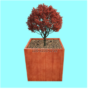 户外玻璃钢仿木纹花盆雕塑商业街大型创意玻璃纤维方形花箱厂家
