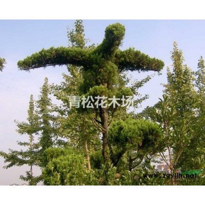 龙柏是圆柏的人工栽培变种。树冠圆柱状或柱状塔形;枝条向上直展,常有扭转上升之势,小枝密、在枝端成几相等长之密簇;鳞叶排列紧密,幼嫩时淡黄绿色,后呈翠绿色;球果蓝色,微被白粉。高可达8米,树干挺直,树形呈狭圆柱形,小枝扭曲上伸,故而得名。小枝密集,叶密生,全为鳞叶,幼叶淡黄绿色,老后为翠绿色。球果蓝绿色,果面略具白粉。龙柏树形除自然生长成圆锥形外,也有的将其攀揉盘扎成龙、马、狮、象等动物形象,也有的修剪成圆球形、鼓形、半球形,单值或列杆、群植于庭园,更有的栽址成绿篱,经整形修剪成平直的圆脊形,可表现其低矮、丰满、细致、精细。龙柏侧枝扭曲螺旋状抱干而生,别具一格,观赏价值很高,中国各地广为栽培。安徽龙柏的径1-1.2毫米。叶二型,即刺叶及鳞叶;刺叶生于幼树之上,老龄树则全为鳞叶,壮龄树兼有刺叶与鳞叶;生于一年生小枝的一回分枝的鳞叶三叶轮生,直 伸而紧密,近披针形,先端微渐尖,长2.5-5毫米,背面近中部有椭圆形微凹的腺体;刺叶三叶交互轮生,斜展,疏松,披针形,先端渐尖,长6-12毫米,上面微凹,有两条白粉带。雌雄异株,稀同株,雄球花黄色,椭圆形,长2.5-3.5毫米,雄蕊5-7对,常有3-4花药。球果近圆球形,径6-8毫米,两年成熟,熟时暗褐色,被白粉或白粉脱落,有1-4粒种子;种子卵圆形,扁,顶端钝,有棱脊及少数树脂槽;子叶2枚,出土,条形,长1.3-1.5厘米,宽约1毫米,先端锐尖,下面有两条白色气孔带,上面则不明显。
