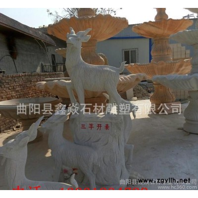 动物石雕汉白玉山阳开泰雕刻 晚霞红三阳开泰石刻 **石雕