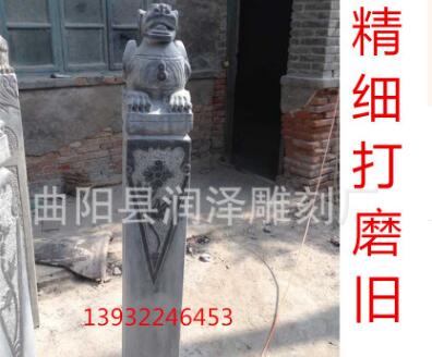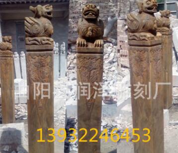 貔貅栓马桩石雕 皮丘栓马柱子 青石仿古做旧栓马石 狮子庭院摆件