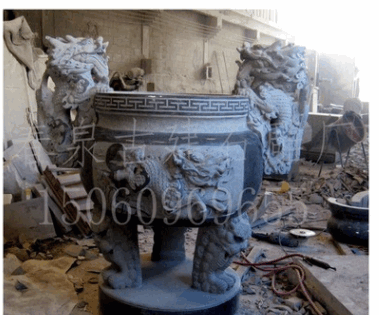 【供应寺庙雕刻】-- 现货石雕- -青草石香炉