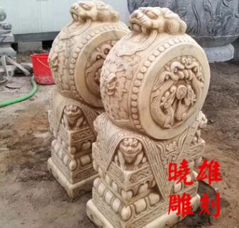 石雕抱鼓门墩一对汉白玉青石做旧门墩狮子小象门鼓石镇宅辟邪摆件
