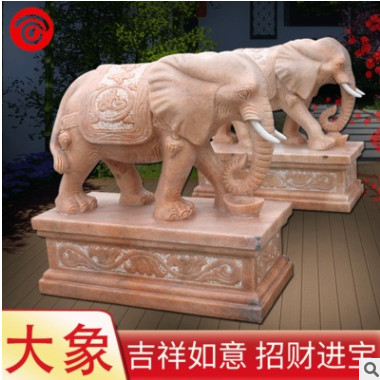 石头大象定做晚霞红大象大理石镇宅瑞兽酒店门口招财石雕大象摆件