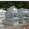 天然青石晚霞红花岗岩门口抱鼓石 招财镇宅神兽门墩石