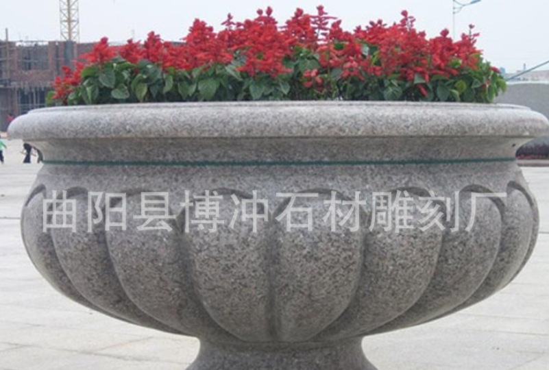 厂家提供汉白玉石雕花盆 花岗岩大理石园林雕塑花盆