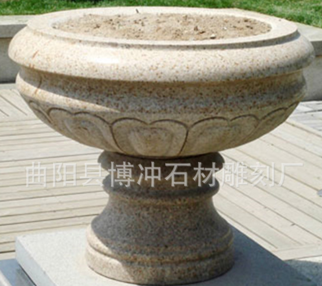 厂家提供汉白玉石雕花盆 花岗岩大理石园林雕塑花盆