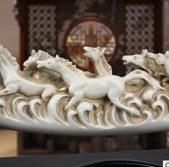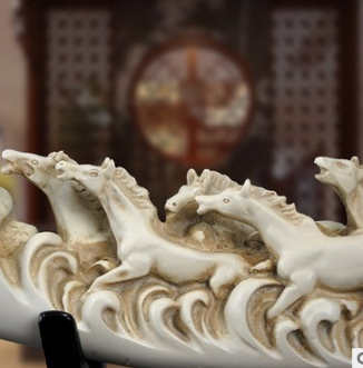 八骏奔腾象牙摆件 树脂工艺品 招财礼品 办公室玄关书房摆设