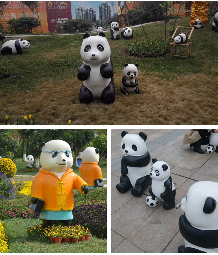 户外卡通仿真大熊猫雕塑摆件园林景观动物玻璃钢庭院装饰美陈定做