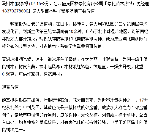 全冠马褂木(鹅掌楸)12公分,13公分,15公分价格