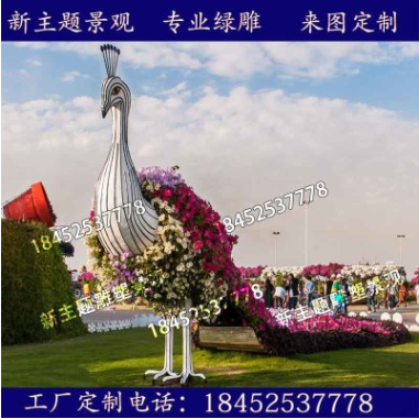 厂家定制仿真绿雕动物孔雀摆件仿真绢花插花孔雀造型植物动物雕塑