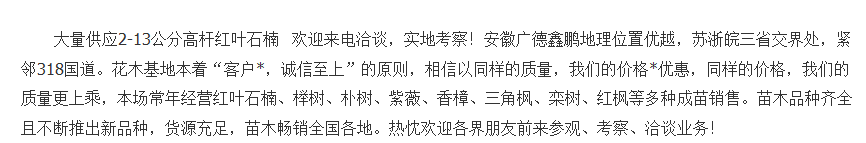 安徽广德红叶石楠*近行情 大量供应2-13公分