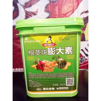 本品富含根茎块作物特种促进剂、膨大剂、土壤活化剂(DRH)、胺鲜脂、生物抗菌因子,依据根茎块作物的生长机理精心研制的高效膨大增产制剂,克服了连续种植引起的土壤板结,并迅速活化土壤中的氮磷钾成分转化为速效营养,植物吸收后,可促进内源激素转移,增强光合作用和多种酶的活性,促进花青素和蛋白质的合成,高效促进茎块作物的细胞分裂,增加叶绿素的含量,生根壮苗,解磷解钾,固氮,根系发达,生长旺盛,膨大均匀。特有的防病机制,使作物自身提高抗病、抗毒能力、有效防止大姜枯萎病、姜瘟病、大葱疫病、黄萎病、大蒜青枯病、干腐病等病害的发生和侵染,并能促进大蒜早抽苔、易采摘、增产幅度高达50%以上。