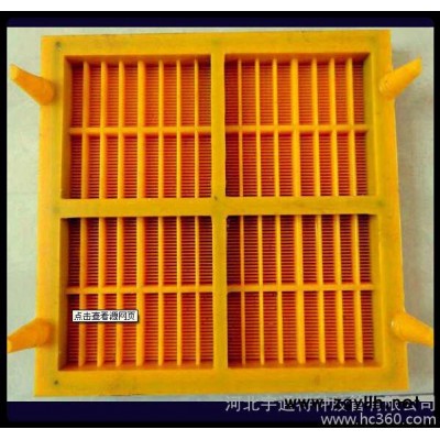 聚氨酯脱水筛网、筛板广泛使用于冶金、矿山、煤炭、建材、水利、筑路等行业的筛分机上,是钢板冲孔筛网、钢丝编织网、不锈钢筛板及橡胶筛板的换代产品,具有重量轻、筛分效率高、不堵孔、抗摩擦、抗冲击、抗撕裂、寿命长(是不锈钢筛板的2-3倍)、噪声低、安装方便、综合效益高等优点。