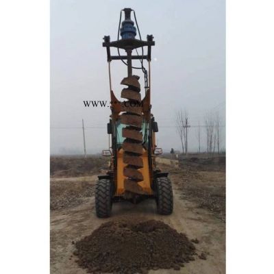 铲车钻坑机是铲车由我们厂家自家改装成液压挖坑式钻眼机,整套包括液压装置,定做合金长度1-3米,直径20公分-1米钻头还有一台铲车组合而成,质量优越,价格合理,型号齐全,钻洞效率快,整个工程下来全是机器干活,只需要一个会开铲车的人,多少坑都没问题!
