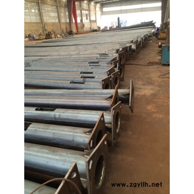 4、钢杆防腐处理采用内外热镀锌,镀锌工艺过程经过酸洗、热镀锌、水洗、磷化、钝化等过程,镀锌层表面光滑美观,光泽一致,无皱皮、流坠及锌瘤、起皮、斑点、阴阳面等缺陷存在,锌层厚度达到 86um以上,符合**标准GB/T13912-92,镀锌层附着力符合GB2694-88的要求,防腐寿命大于30年。