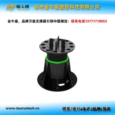 金牛座支撑器:是从欧洲引进的一种新型的建筑材料,其主要材质为高密度聚丙烯,其主要特性:强度高、耐老化、寿命长、高频绝缘性能、耐候性强、不受冷热潮湿影响产品的性能,支撑器由可调节基座和可旋转接头连接组成。 支撑器应用领域广泛,可适用于建筑木地板和园林景观防腐木架空铺设、也可用于 园林景观水景石材的架空铺设、同样还应用于展览展台的搭建以及工业领域。能够解决特殊建筑工程施工和后期维修工作的难题,多功能的产品设计给设计师无限的想象空间,是现代建筑工程和工业用途中一种崭新建材材料。 根据其具体的应用,大体可分为:石材支撑器;水景石材支撑器;木材支撑器;展台支撑器。
