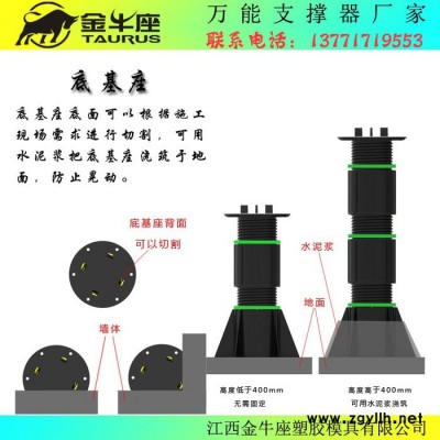 本公司位于江西省吉安市青原区河东经济开发区**金牛座支撑器、石材支撑器、木龙骨支撑器、石材垫高器、喷泉水景支撑器、旱喷支撑器、楼顶花园支撑器 。 主要用于 建筑、工程施工、家用、广场花园、楼顶花园等 ,质量保证,欢迎咨询洽谈。