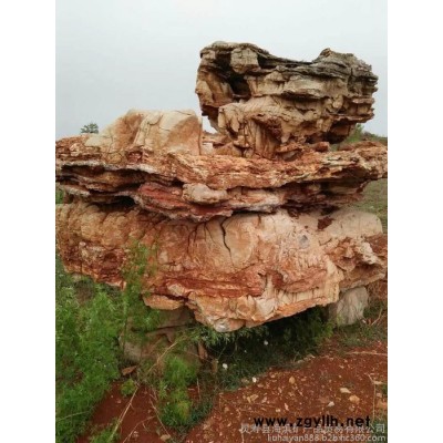 千层石:也称积层岩,属于海相沉积的结晶白云岩,石质坚硬致密,外表有很薄的风化层,比较软;石上纹理清晰,多呈凹凸、平直状,具有一定的韵律,线条流畅,时有波折、起伏;颜色呈灰黑、灰白、灰、棕相间,其棕色稍显突,色泽与纹理比较协调,显得自然、光洁;造型奇特,变化多端,多有山形、台洞形等自然景观,亦有宝塔形、立柱形及人物、动物等形象,既有具象又有抽象,神韵秀丽静美、淡雅端庄。