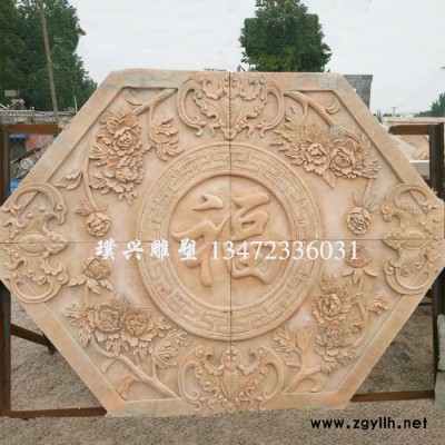 璞兴雕塑 石雕浮雕 石雕壁画 福字浮雕