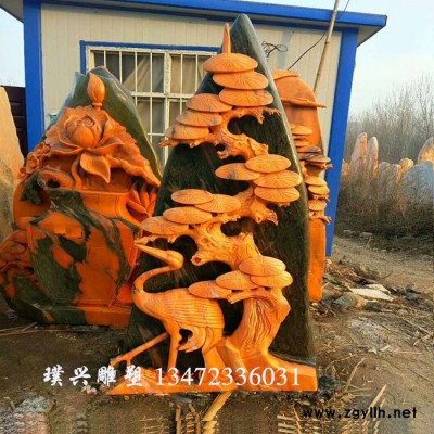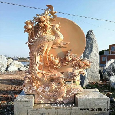 璞兴雕塑 石雕凤凰牡丹晚霞红凤凰戏牡丹公园景观石景观石雕刻