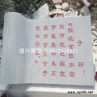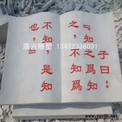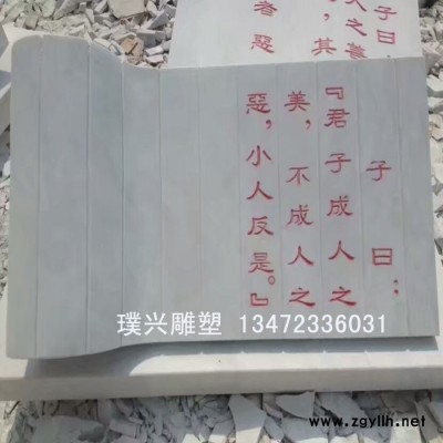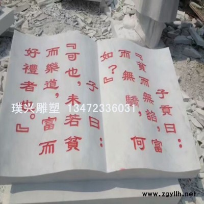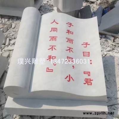 璞兴雕塑 石雕书本 汉白玉石刻书本 石雕书本论语十则刻字