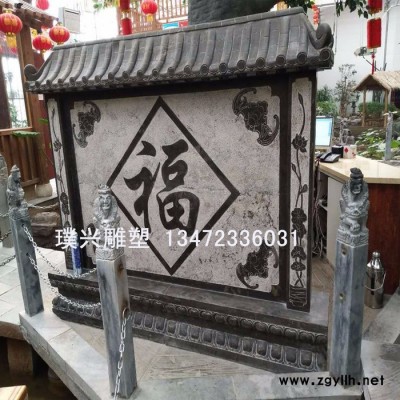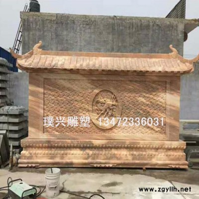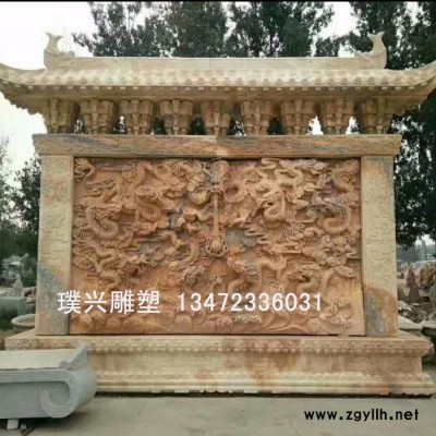 璞兴雕塑 石雕照壁墙晚霞红照壁影壁浮雕制作