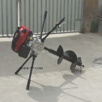 挖坑机是我厂生产的一款适合小型园林.植树.栽电线杆等手持式便携工具.由小型通用汽油机,超越离合器,高减速比传动箱及特殊设计的钻具组成适合于<20度以下的坡地、沙地、硬质土地的植树造林或果树种植,道路两侧绿化植树等。苗木种植挖穴,畜牧围栏埋桩挖穴;葡萄胡椒种植埋桩挖穴;果树、林木施肥挖穴。挖坑直径:200mm,250 mm,300 mm,400 mm 操作每小时不低于80个坑,按工作8小时计算,可以挖640个坑,是人工的30多倍。让人们从繁重的体力劳动解放出来,广泛应用于植树造林,栽种果林、篱笆、及秋季给果树施肥等。动力强劲有力,外形美观,操作舒适,劳动强度低,适合各种地形,效率高,便于携带及野外田地作业。