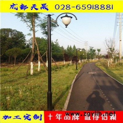 庭院灯灯杆主要材质有:等径钢管、异性钢管、等径铝管、铸铝灯杆、铝合金灯杆。常用的直径有,Φ60、Φ76、Φ89、Φ100、Φ114、Φ140、Φ165,根据高度和所用场所的不同,所选材料厚度分为:壁厚2.5、壁厚3.0、壁厚3.5。(以上为常规尺寸)