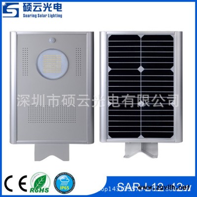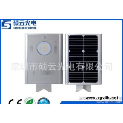 深圳市硕云光电有限公司开发的一体化路灯是一款智能控制室外太阳能照明灯。 运用了微控制器,热红外线人体感应等多项**实用控制技术,结合简约的一体化结构设计(集高效sunpower太阳能板,智能控制器,5年超长使用寿命磷酸铁锂电池,高效的LED,PIR人体红外感应器于一体**的实现低功耗高亮度,长寿命免维护, 便运输、易安装,优异的防水散热性能等多种性能要求, 是户外太阳能灯具****省安装的**选择!