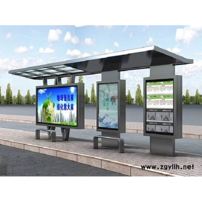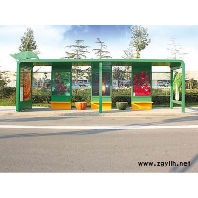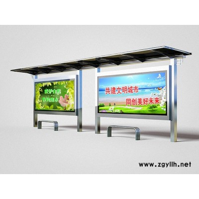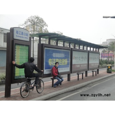 公交车候车亭一般是与公交站牌相配套的,为方便公交乘客候车时遮阳、防雨等,在车站、道路两旁或绿化带的港湾式公交停靠站上建设的交通设施。由于城市公交的日益发达,候车亭已发展成为城市一个不可或缺的重要组成部分,设计精美的候车亭也成为了城市一道美丽的风景。一般候车亭棚体主要顶棚、立柱、顶弓、广告灯箱和坐凳组成,也有用隔板来代替广告灯箱的。 产品工艺:表面处理分为180°静电喷塑、氟碳烤漆、汽车金属烤漆等。顶棚分为钢化玻璃,夹胶玻璃、耐力板、阳光板、铝塑板、镀锌板等。灯箱视窗分为6mm钢化玻璃,8mm钢化玻璃,4mm透明耐力板灯管电器分为LED节能灯 ,飞利浦,佛山,德力西等。配件产品有LED显示屏、发光字、LED、LCD液晶屏、滚动换画系统、太阳能、智能电子等。 公交候车亭,公交车站台产品组合较多,为4米组合、5米组合、6米组合、8米组合、10米组合、12米组合、16米组合和20米组合,可采取直线式安装和港湾式安装,目前,我公司已开发了数款公交站台产品磨具,已经实现批量生产,极大的降低了成本。