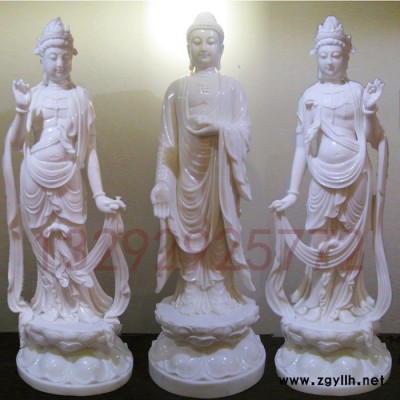 定制 石雕西方三圣阿弥陀佛白石观世音