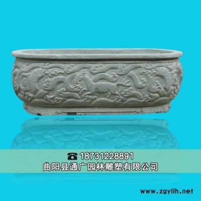 曲阳石雕【通广】园林雕塑**庭院别墅仿古花盆鱼缸石槽流水景观装饰工艺品摆件