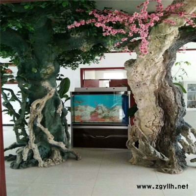 室内外人工假树制作树体,仿造的树种有榕树、松树、桃树、柳树等,假树是造景行业中的主要品种,在室内工装、室外主题造景中了广泛的运用。目前,随着假树的发展,延伸出假树景观大门、枯树景观大门、仿木纹、仿木栏杆等新型品种。