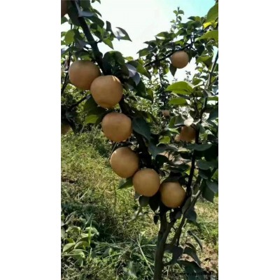 59.【晚蜜梨】是从国外引进的晚梨新秀,10月中旬成熟,其果大,单果重483g,900g以上,皮薄,肉细,青脆,汁多无渣,核小,浓甜,有香气,耐储运,常温下可储存3个月,该品种自花结实,早果、极丰产、抗力强、适应多种气候种植。