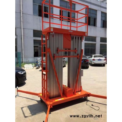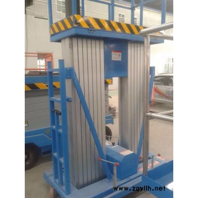 四立柱铝合金升降机:整体采用高强度铝型材精制而成由于型材强度高,采用四桅柱式结构,稳定性极好,运转灵活,载重量大,平台面积大,推行方便。它轻盈的外观,能在极小的空间内发挥**高的举升能力。使升降台的偏转与摆动极小。该升降机广泛用于厂房、宾馆、大厦、商场、车站、机场、体育场等。可用作电力线路、照明电器、高架管道等安装维护,高空清洁等单人工作的高空作业。
